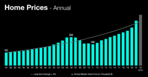 Home sale prices in the past two years increased at a higher rate than ever before, and well above the long term average of 4%. While home sales prices are expected to level off in 2023, home sale prices are expected to slow down, not necessarily go down. Appreciation rates will likely be much closer to the long term average as the market continues to become more balanced. As this shift takes place, it is more important than ever for sellers to be smart about the pricing of their home. By pricing a home based on the market that we are heading into, rather than the market we’re coming out of, seller’s will still be able to capitalize on all of the equity that has been gained in the past few years.