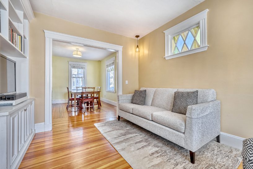 Delightful single-family home only three blocks from downtown Medford; walking distance to multiple public transportation options, shopping, and trails. This inviting slate-roof colonial combines classic character with many modern updates. Situated on a desirable corner lot, it includes two side-by-side, off-street parking spots. As you enter, you’ll be greeted by stunning stained-glass windows that bathe the space in natural light, creating a warm and welcoming atmosphere. The first floor of this home includes beautiful built-in custom cabinetry that adds both function and style. Ample storage throughout maintains a clean, streamlined look. The thoughtfully-designed layout includes a spacious, dry basement ready for a gym or casual hangout space. Meticulously cared for, recent updates include restoration of all the original windows on the first floor, replacement of four windows upstairs, new faucets in the bathroom, and recessed lighting in the kitchen and primary bedroom.
